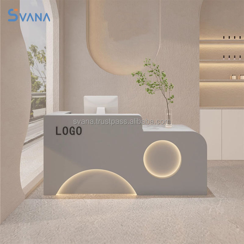 Modern Office Beauty Salon Wooden White L-shape Reception Desk With Cabinets