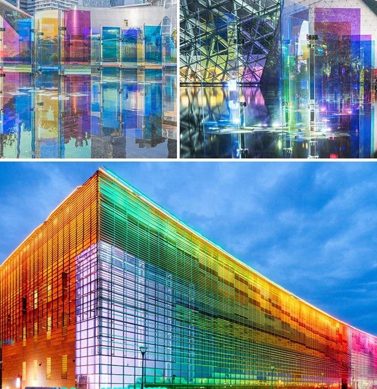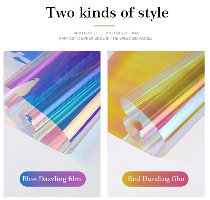 Modern Office Building Decoration Colorful Chameleon Red Blue Rainbow PET Glass Sticker Window Tint Dichroic Film
