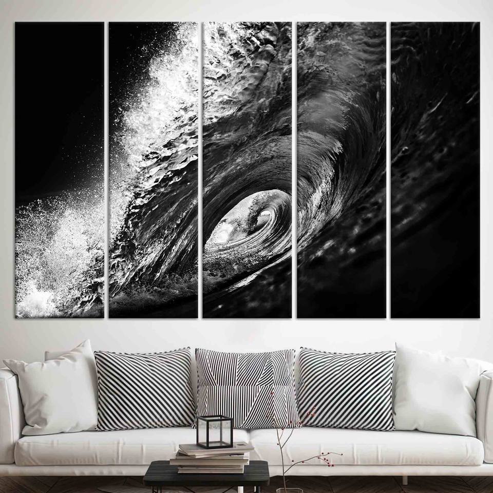 Modern Office Decor: Black and White Wave Art Printed Canvas,SET OF 5 CANVAS