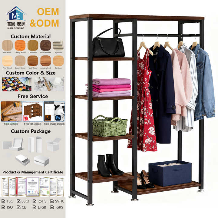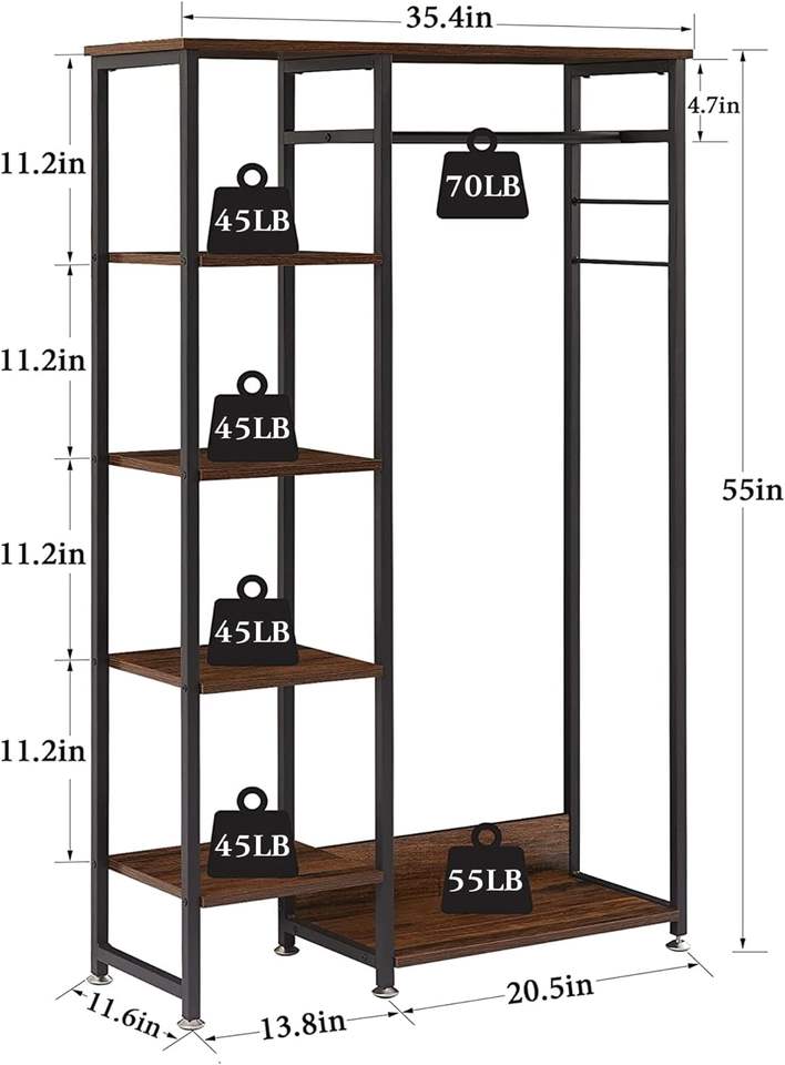 Modern Open Garment Clothing Rack Free-Standing Heavy Duty Storage Closet 5 Shelves Hanging Rod for Small Spaces-Living Room Use