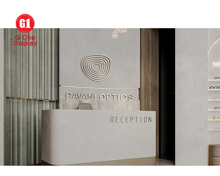 Modern Optical Shop Interior Display Design Custom Wall Mounted Eyewear Shelf Custom Glasses Shop Display Cabinet