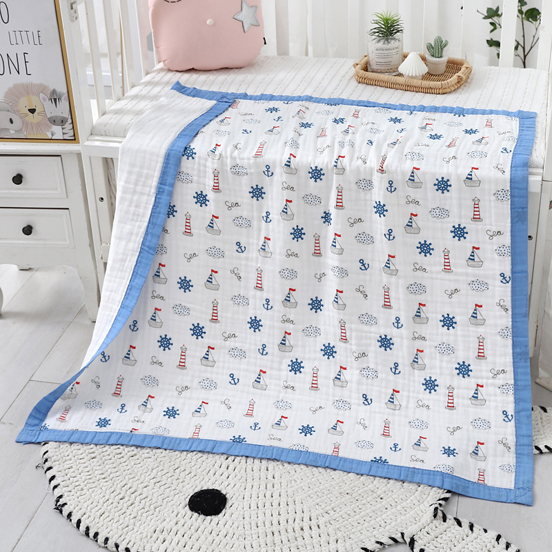 Modern Organic Cotton Baby Seersucker Blanket 6-Layer Gauze Bath Towel Folded Cartoon Muslin Blanket for Children's Bathroom