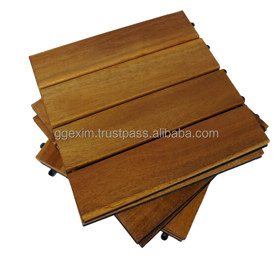 Modern Outdoor Acacia Wood Patio Deck Tiles Interlocking Anti-Slip Waterproof Flooring