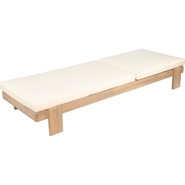 Modern Outdoor Adjustable Teak Sun Lounger with Cushion Solid Wood Patio Reclining Chaise for Courtyard & Villa Use