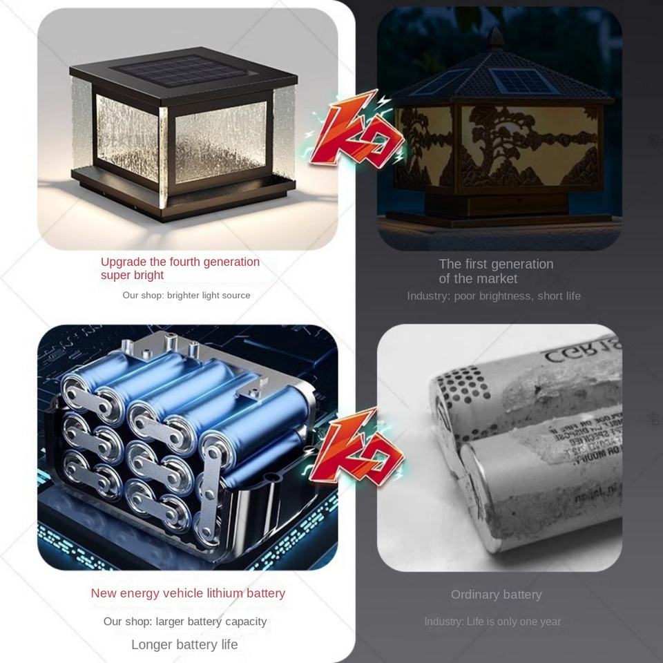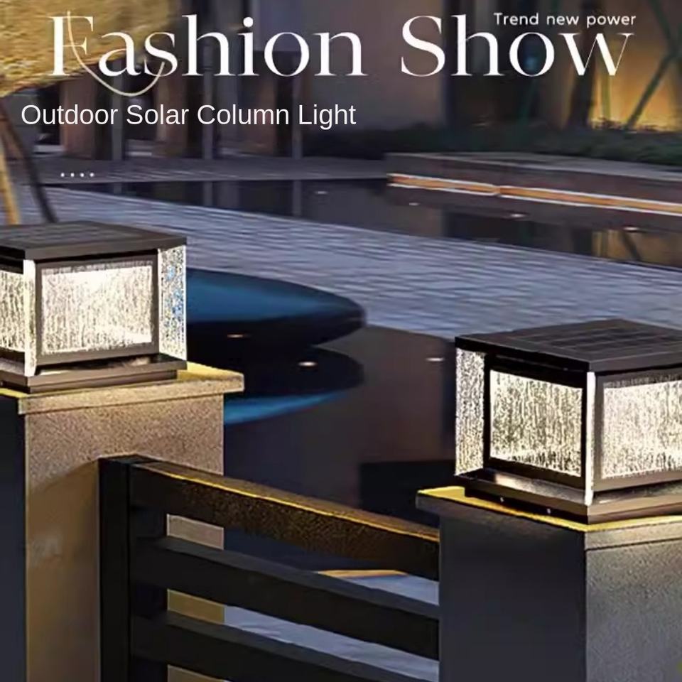 Modern Outdoor Aluminum Column Light Solar Motion Sensor Waterproof Square Garden Fence Main Door LED Pillar Lights E27 Base