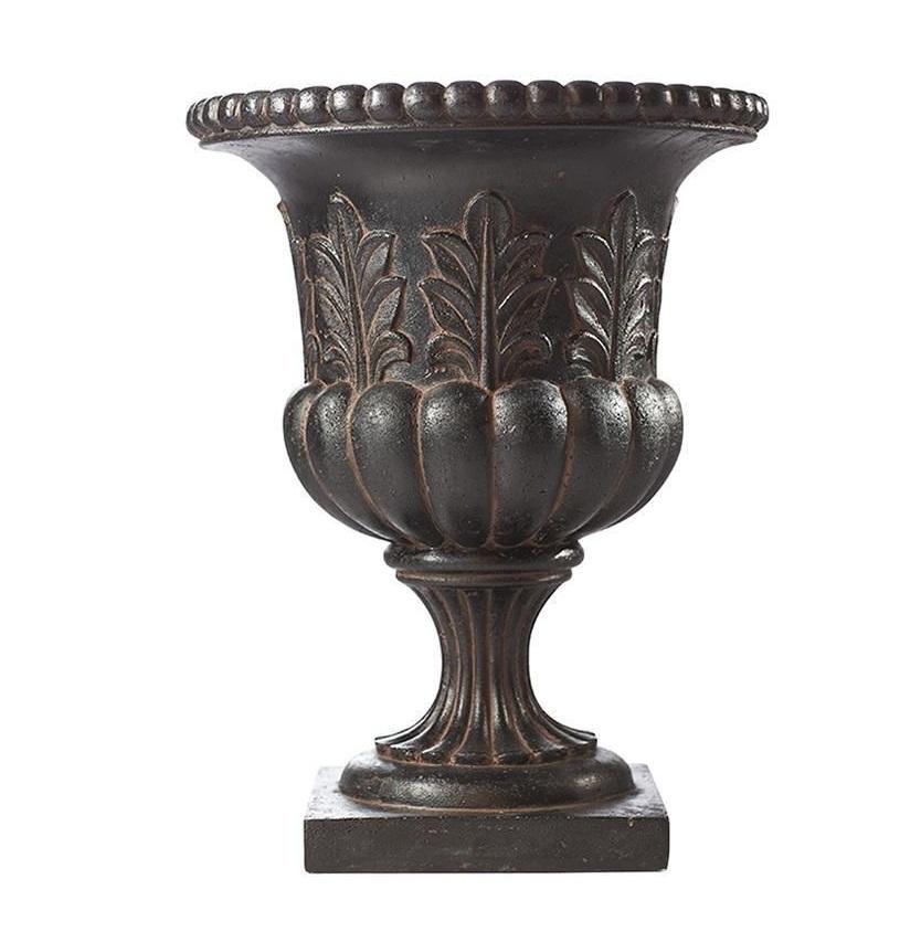 Modern Outdoor Decorative Metal Art Large Cast Iron Garden Flowerpot Urn Black Finished Garden Planter for Home Indoor Decor