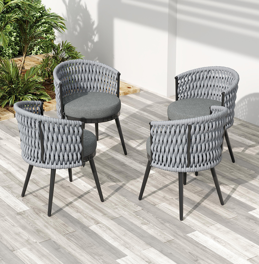 Modern Outdoor Dining Chair-Rope Light Gray Cushion Waterproof Weather-Resistant Patio Furniture with Wood Legs MP2 Set 2