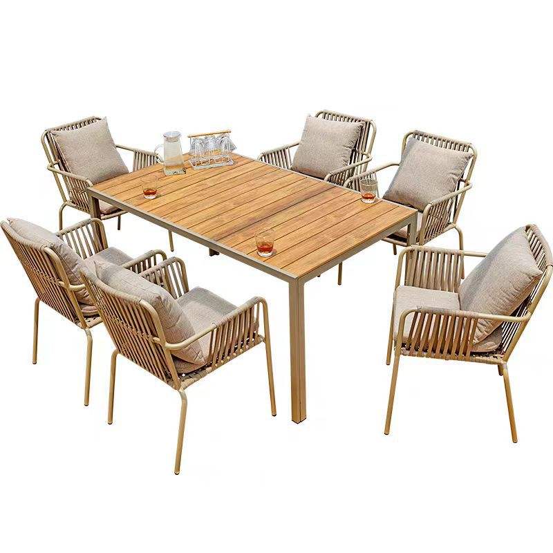 Modern Outdoor Dining Set Anticorrosive Wooden Table and Chairs Courtyard Garden Cafe Plastic Wood Stylish Design