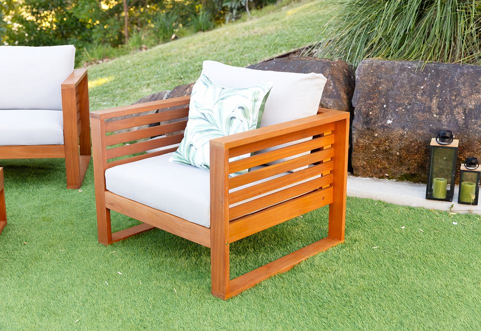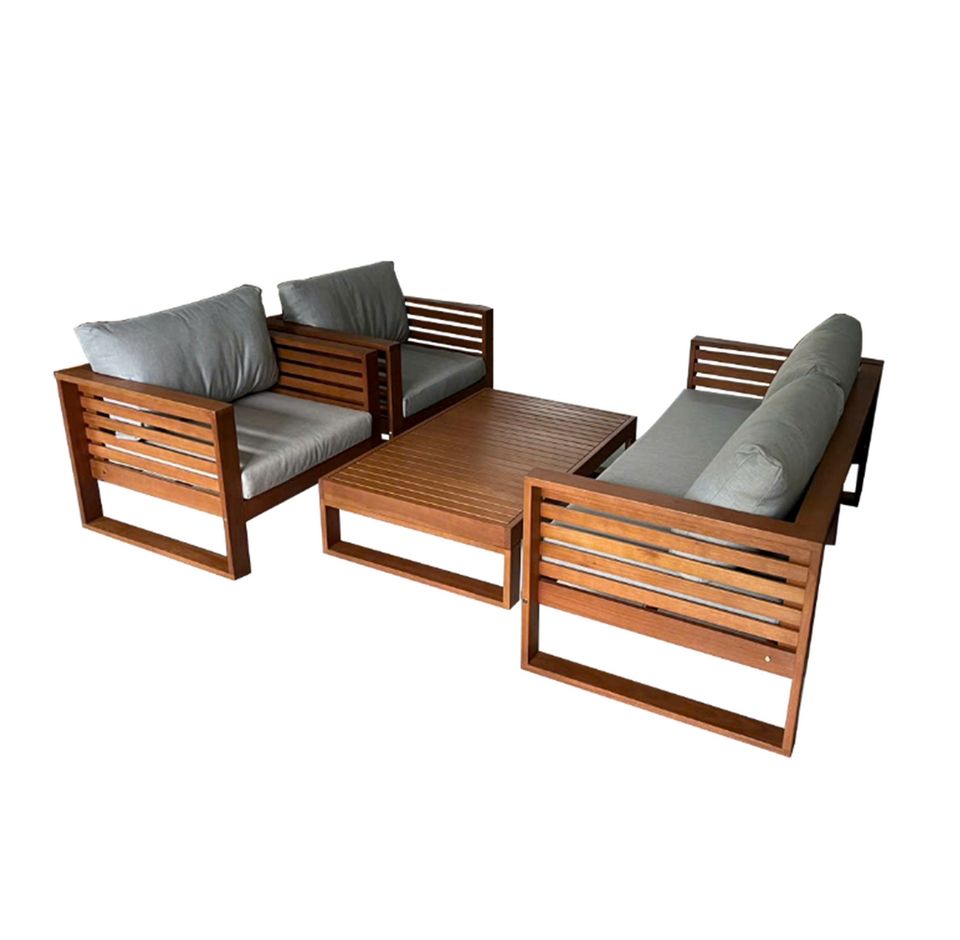 Modern Outdoor Eucalyptus Wood Sofa Set with Deep Seats Soft Cushions for Courtyards Hotels Parks Villas-Made in Vietnam