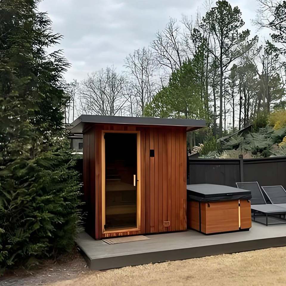 KOERNER Custom MODUS Sauna Modern Red Cedar Electric Stove Far Infrared Dry Steam for 2 People Made Measure Installed for Villas