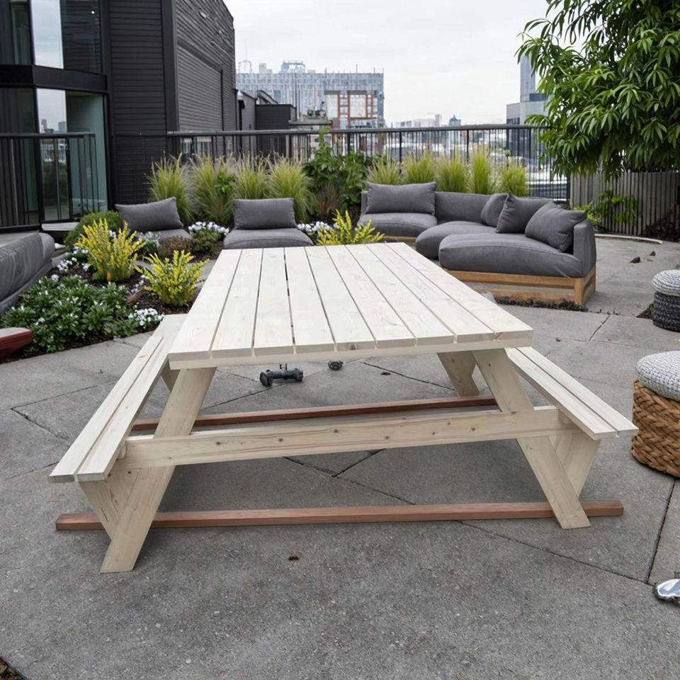 Modern Outdoor Wooden Picnic Table Bench Set Portable Farmhouse and Camping Easy to Assemble