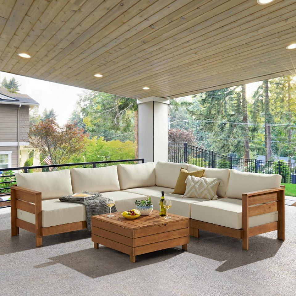 Modern Outdoor Wooden Sofa Set with Cushions and Coffee Table for Hotel & Park Use