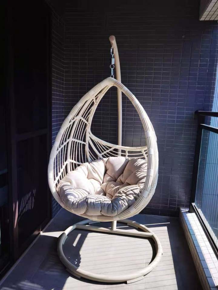 Modern PE Rattan Egg Swing Chair with Cushion-Outdoor Hanging Furniture for Garden Patio Balcony Park Gym & School