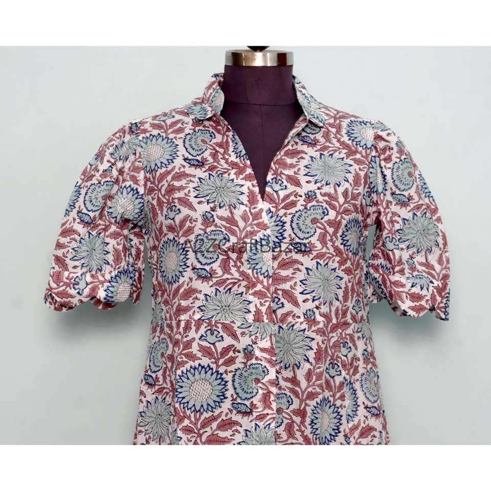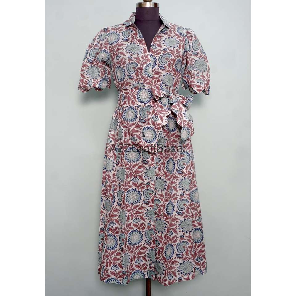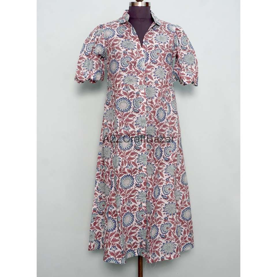 Modern Party Wear Wedding Gown Sweet Style Summer Dress Hand Block Floral Printed Cotton Women's Kangura Beautiful Casual A-Line