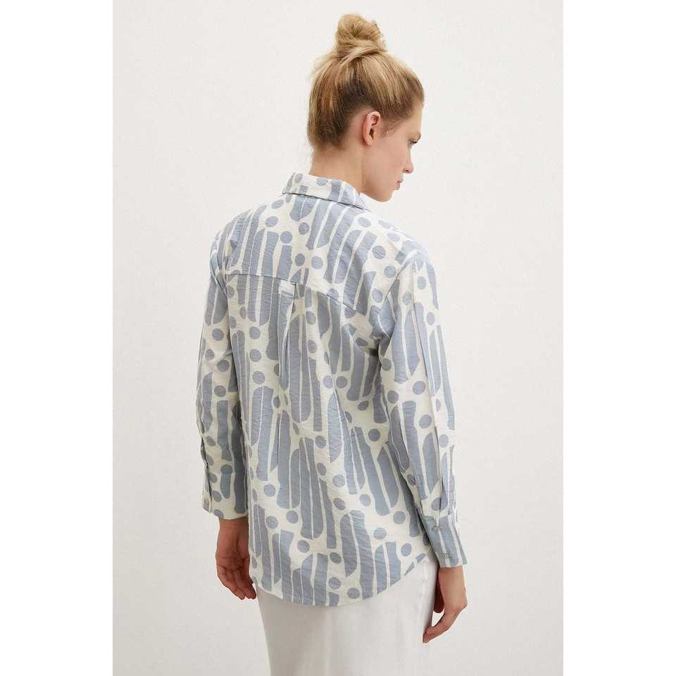 Modern Pattern Modal Shirt Women's Button Down Cut Out Poplin Indigo Everyday Wear