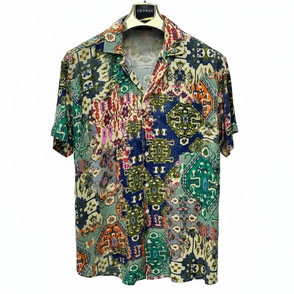 Modern Floral Mens Short Sleeve Shirt Relaxed Fit Satin Fabric Stylish Summer Design Casual Wear UV Protection Holiday