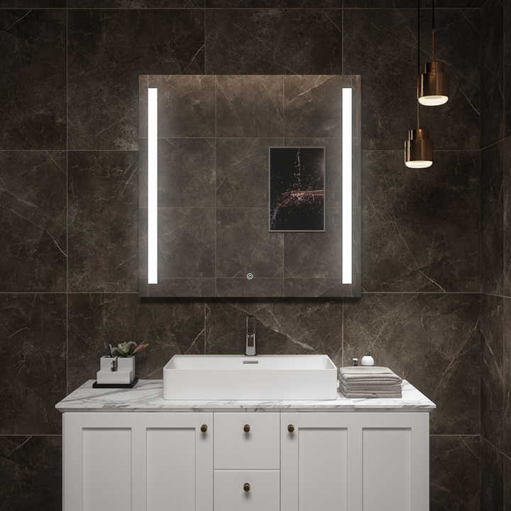 Modern Pill Shape Smart Mirror with Dimmable Front Light and Defogger for Vanity Graphic Design Enabled for Apartment & Villa