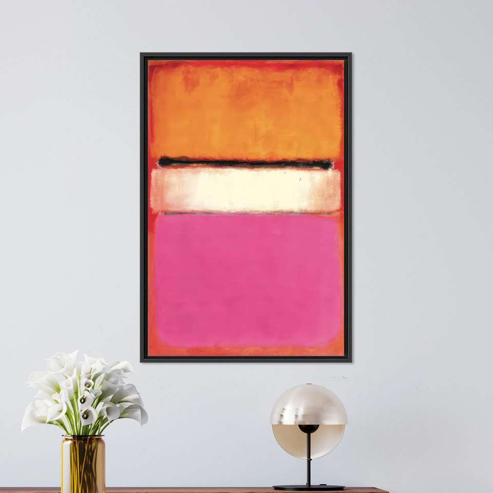 Modern Pink & Orange Abstract Canvas Print, Minimalist Rothko Style Wall Art,Black Framed