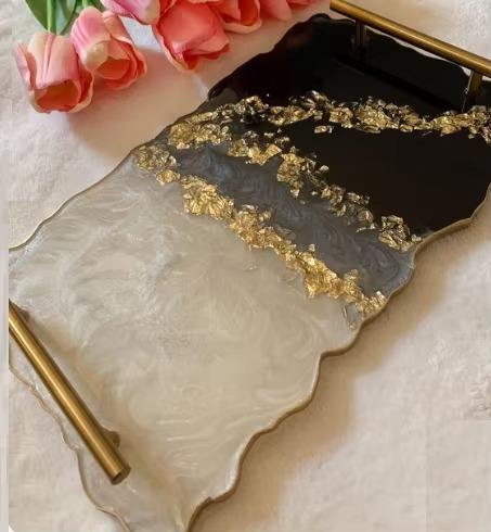 Modern Pink Resin Tray with Silver Glitter Multipurpose Decorative Organizer for Home Kitchen Party and Special Events