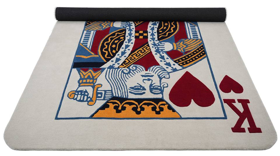 Modern Poker-Inspired Red King of Hearts Design Rug Set Elegant Ivory Hand-Carved Tufted for Home Living Room