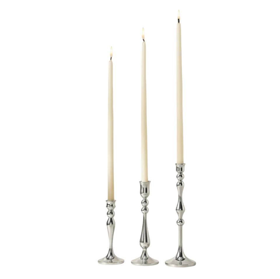 Modern Polished Aluminium Metal Candle Holder Silver Of Pearls Design Candlestick Classic Decorative Table Homeware Gift Set