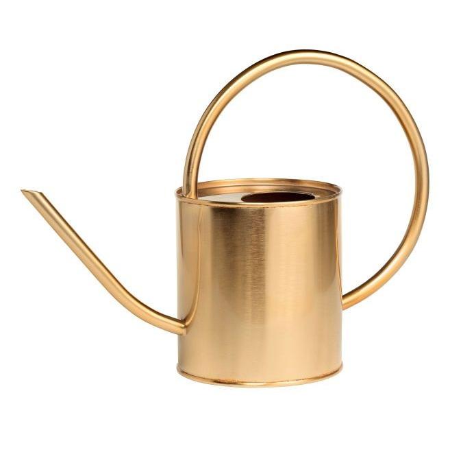 Modern Polished Gold Watering Can with Square Handle and Precision Pour Spout for Elegant Indoor Plant Care