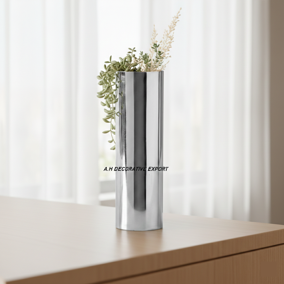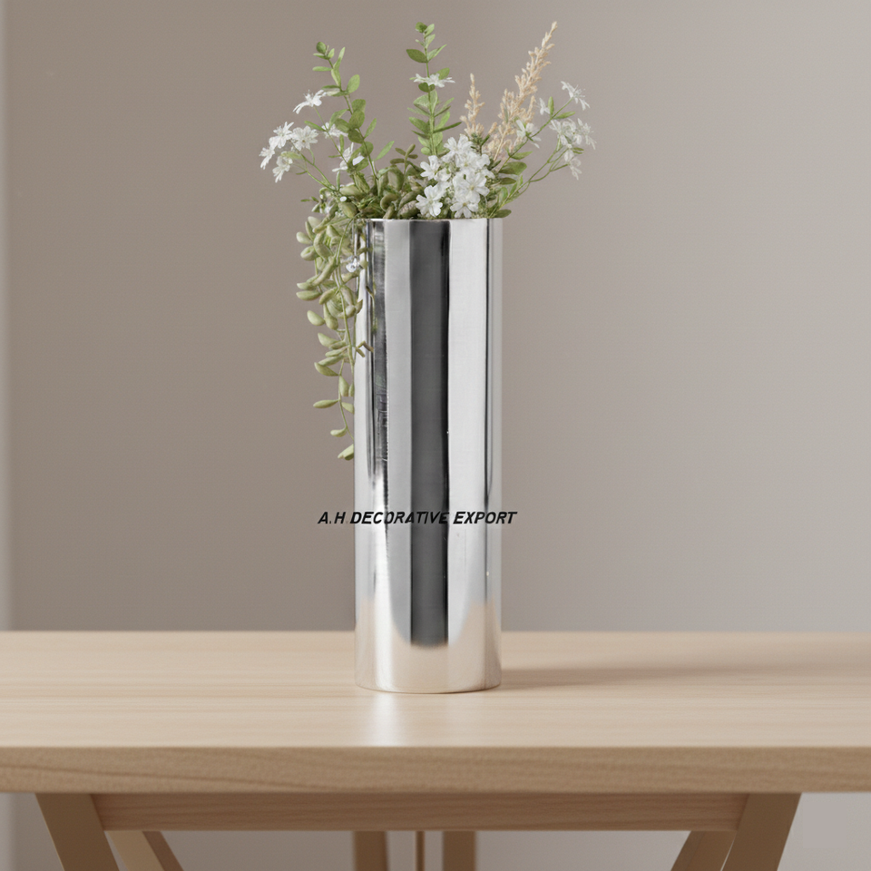Modern Polished Silver Stainless Steel Cylinder Vase-Eco-Friendly Wedding Decorative Vase for Home & Office