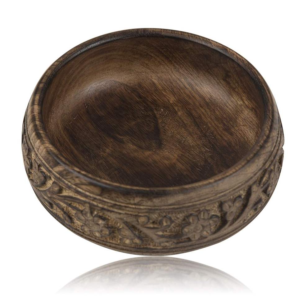 Modern Polished Wooden Carved Eco-Friendly Food Serving Bowl Customizable Size & Round Shape Low Cost Wholesale
