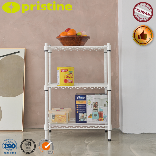 Modern Portable 3-Tier Steel Tube Powder Coated Black White Wire Storage Rack for Bathroom Home Storage
