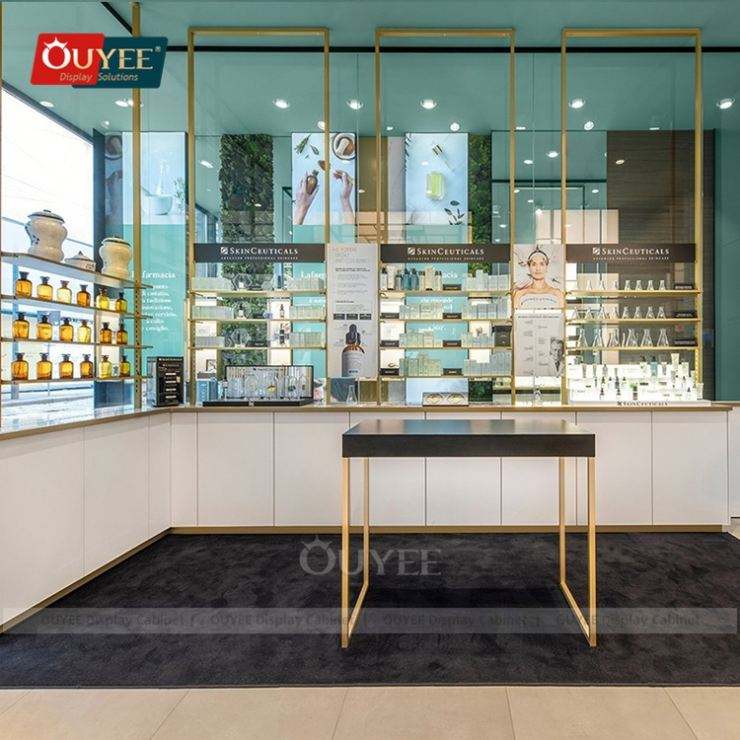 Modern Portable Medicine Store Dispensary Display Cases 3D Design Glass Pharmacy Shelving for Retail Flat Pack Packed