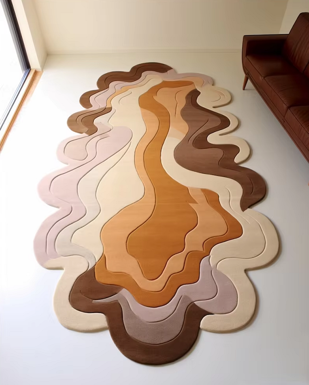 Modern Premium Beige Brown Woolen Hand Tufted Area Rug High Pile Geometric Pattern Design for Living Dining Bedroom Home Decor