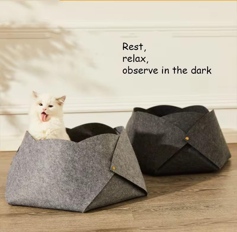 Modern Premium Large Felt Foldable Cat & Dog Bed House with Removable & Washable Scratching Pad and Polyester Fill