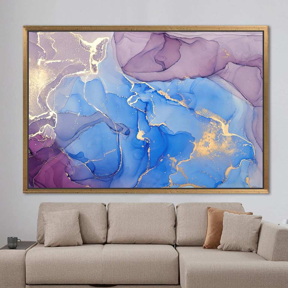 Modern Printed Abstract Gold Marble Art Canvas - Luxury Wall Decor,1P:Gold Framed
