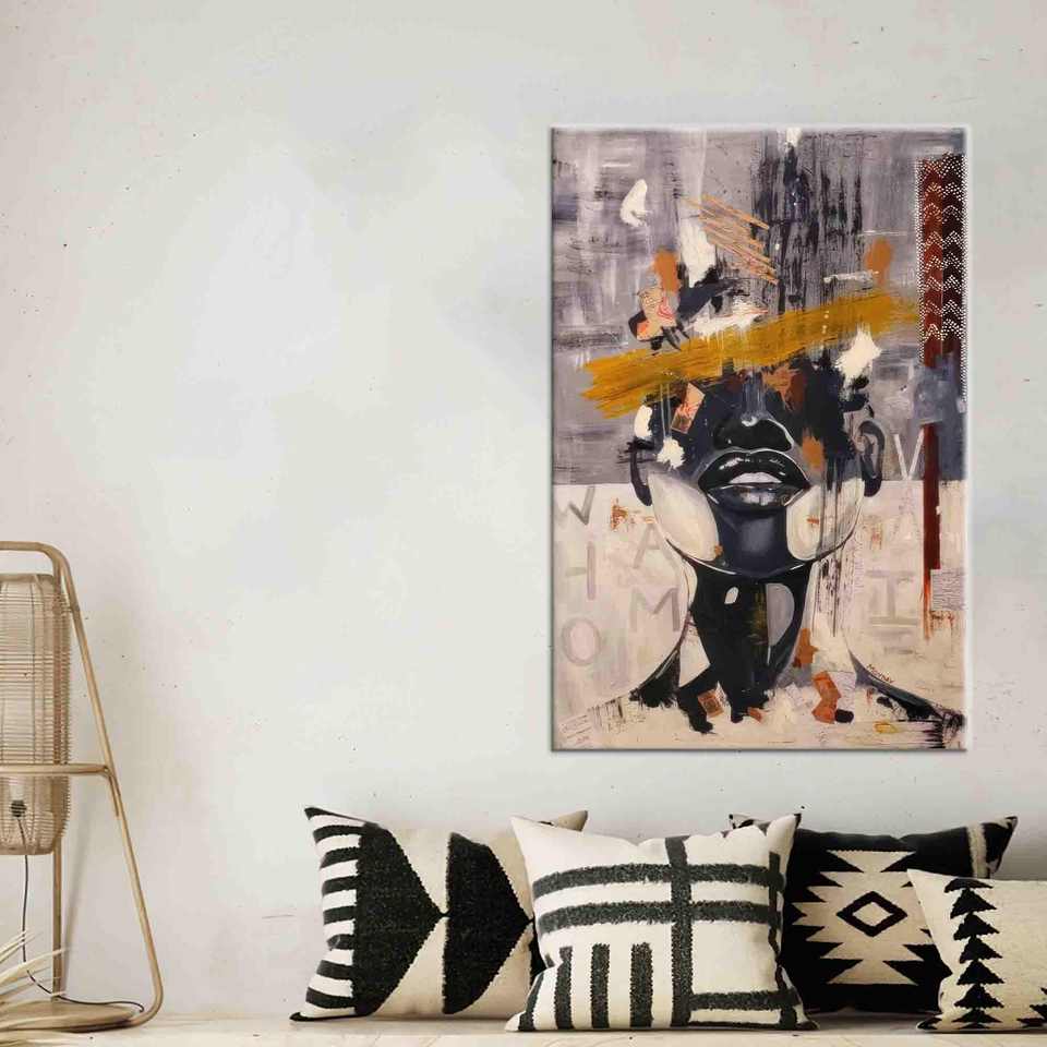 Modern Printed Canvas Artwork: Elegant Woman Face Painting Decor,Gallery Wrapped