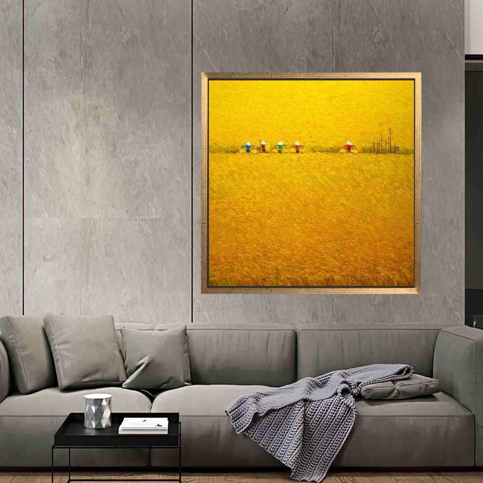 Modern Printed Canvas Artwork: Rice Paddy Field Art Reproduction,Gold Framed