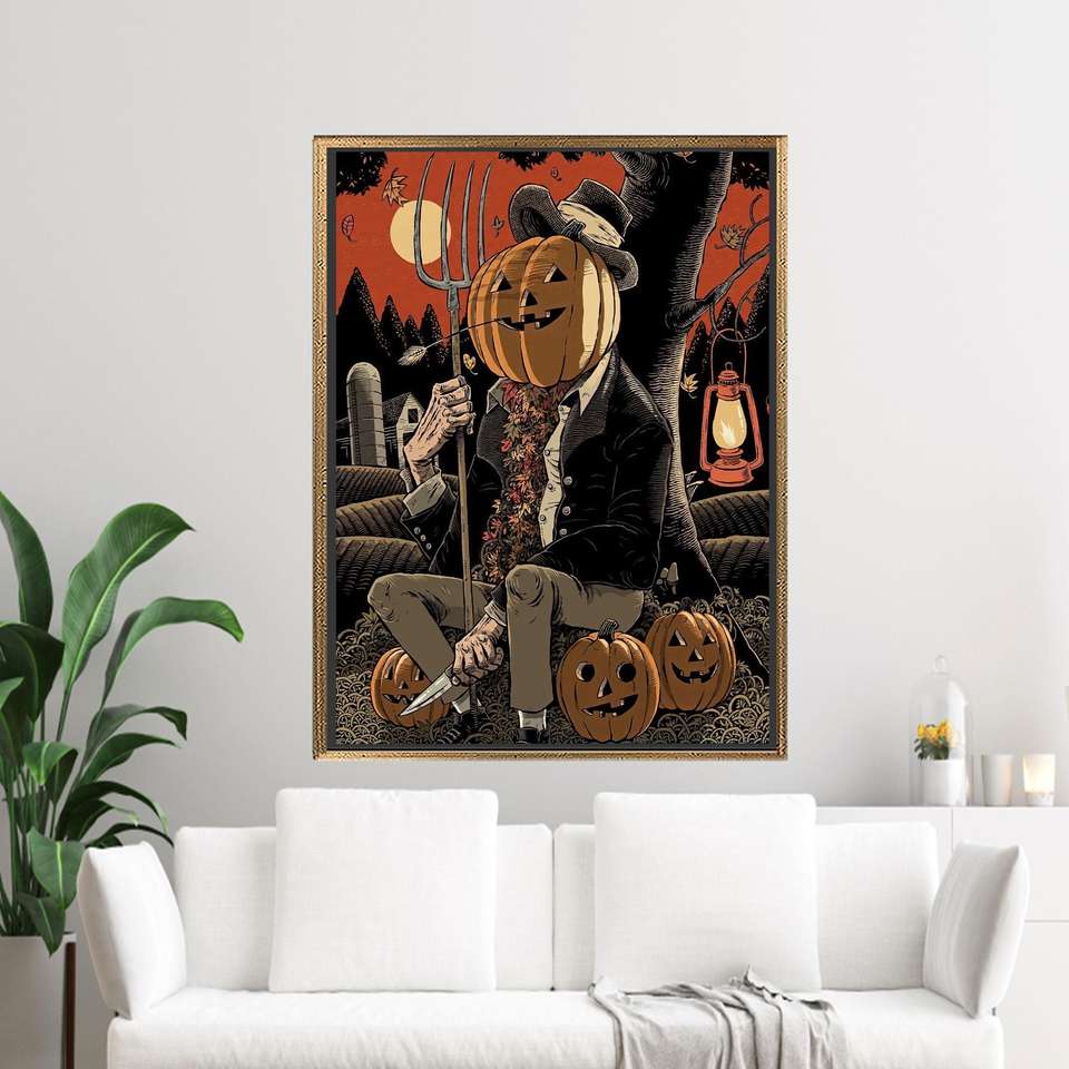 Modern Pumpkin Canvas Print: Elegant Halloween Wall Decor,Gold Framed