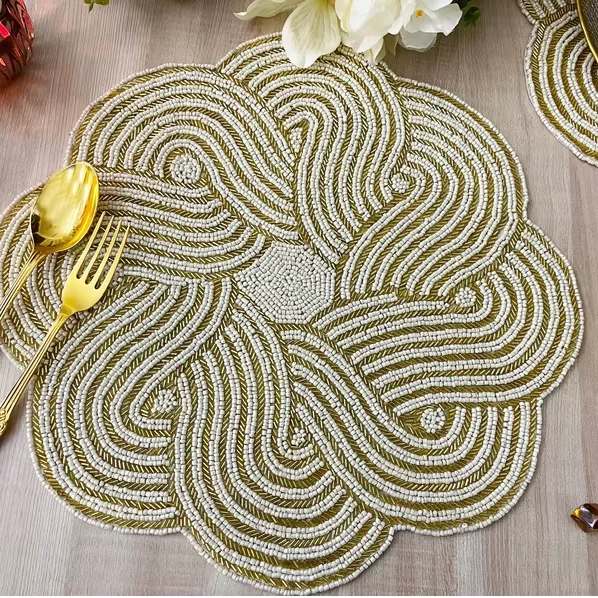 Modern Quality American Design Glass Slate Beaded Runners and Placemats Set Handmade for Kitchen Use