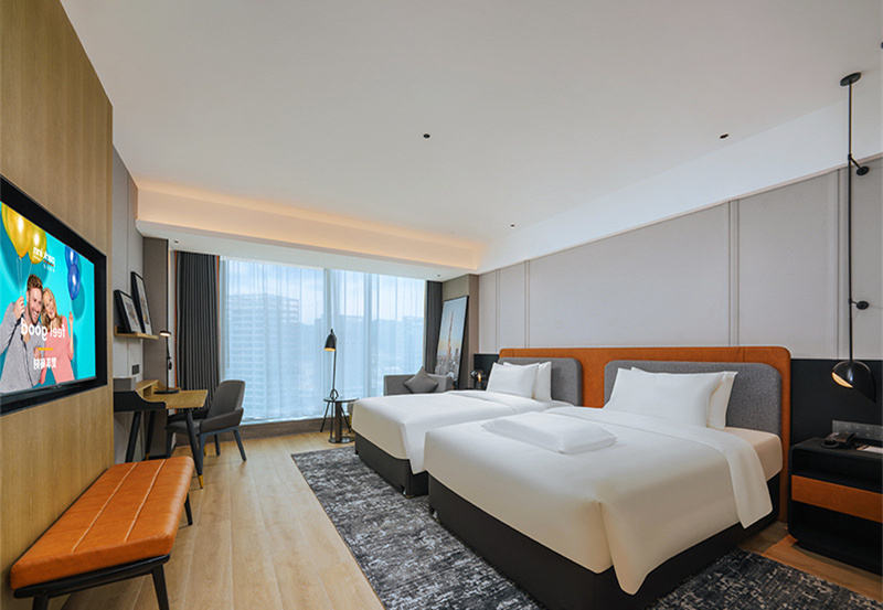 Modern Queen King Size Upholstery Wooden Bed Frame Nightstand Side Tables 3-Star Hotel Apartment Bedroom Set Hospitality Use