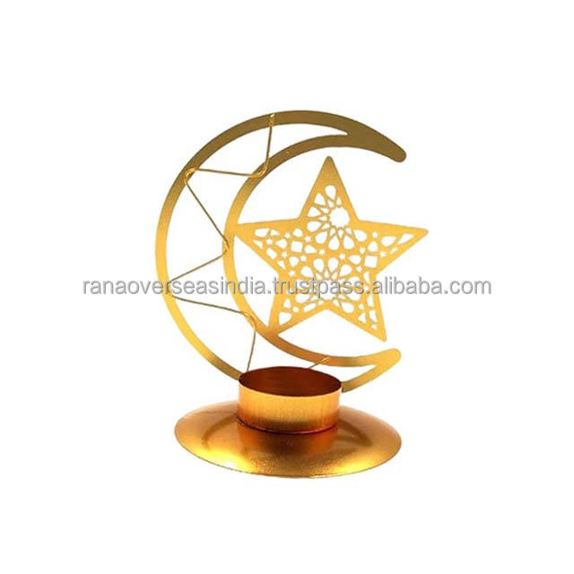 Modern Ramzan Decor T Light Candle Holder With Moon & Star Design Featuring Golden Accents Available in Multiple Finished & Size