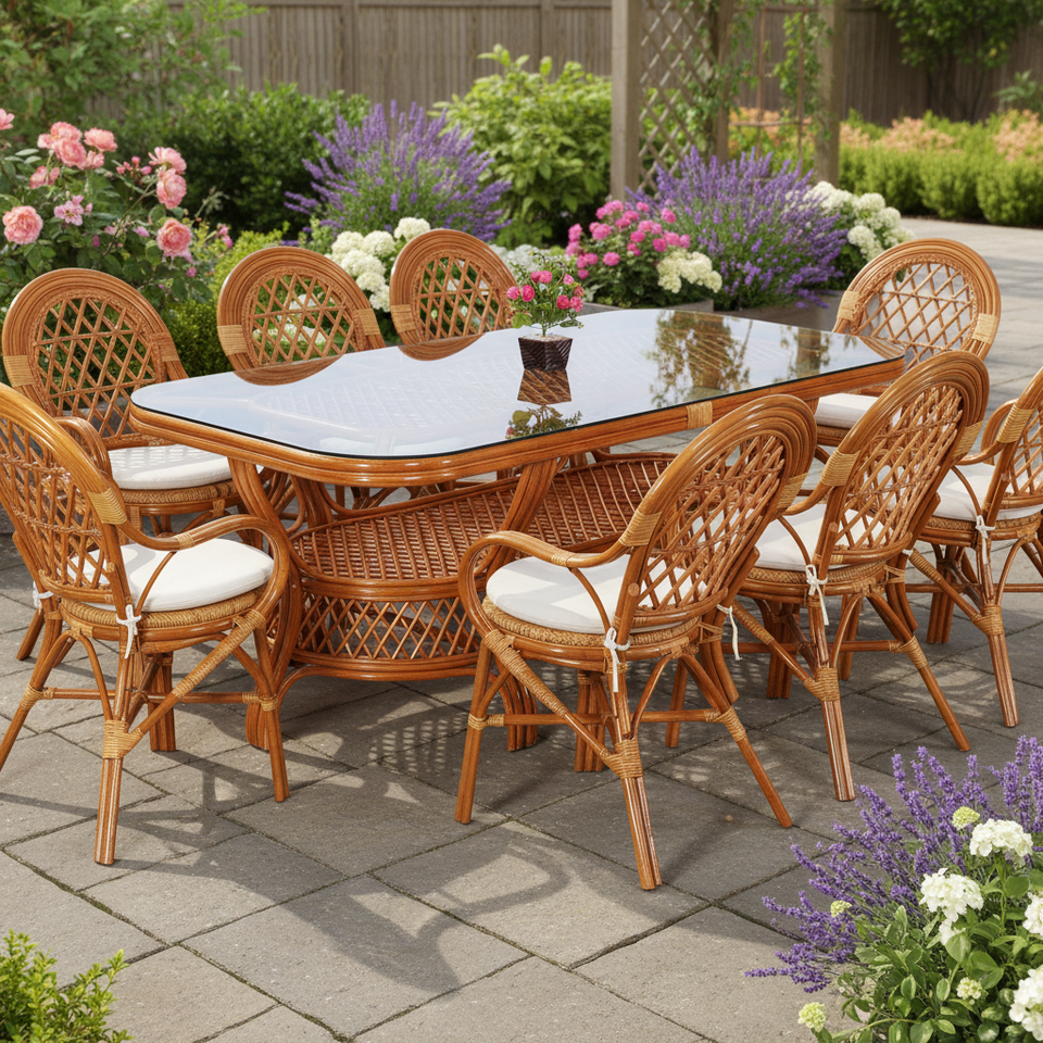 Modern Rattan Dining Set for Commercial Restaurants Hotels & Outdoor Use-Long Table with Modern Design