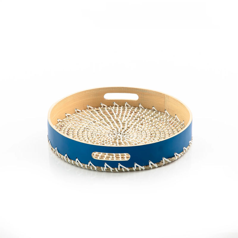 Modern Rattan Tray With Metal Base Designer Handcrafted Texture Ideal For Stylish Display Coffee Table Use And Gifts