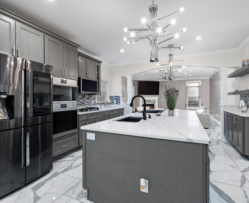 Modern Ready-Made Kitchen Cabinets Sink Complete Cuisine Solution Featuring Marble Stainless Steel MDF Melamine Lacquer Vanity