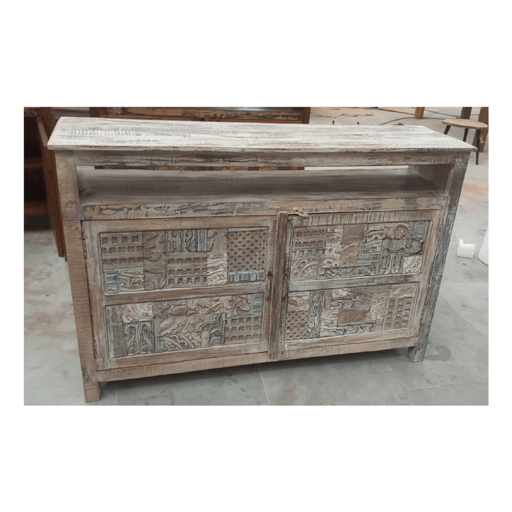 Modern Reclaimed Wood Antique Indoor Furniture 2-Door Old Carved Block Cabinet Wooden for Home Office or Living Room