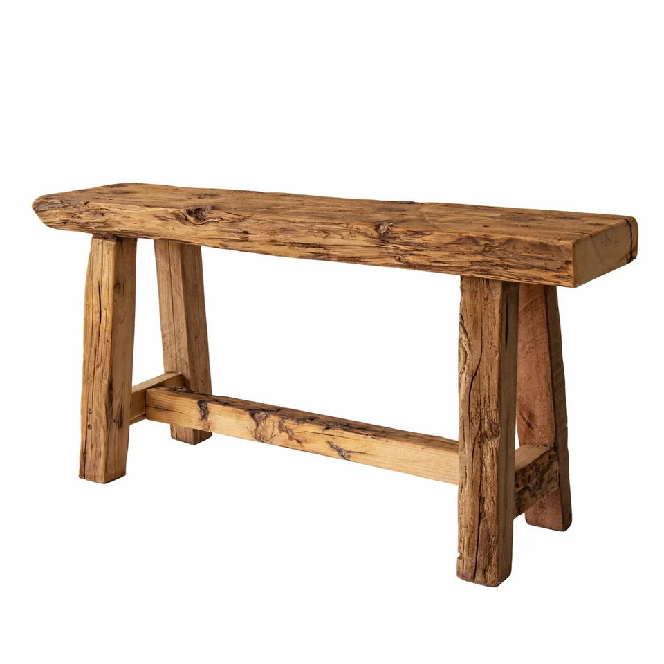 Modern Reclaimed Wood Bench Natural Surface Finish Cast Iron Plastic Materials Indoor/Outdoor Garden Patio Use No Cushion No