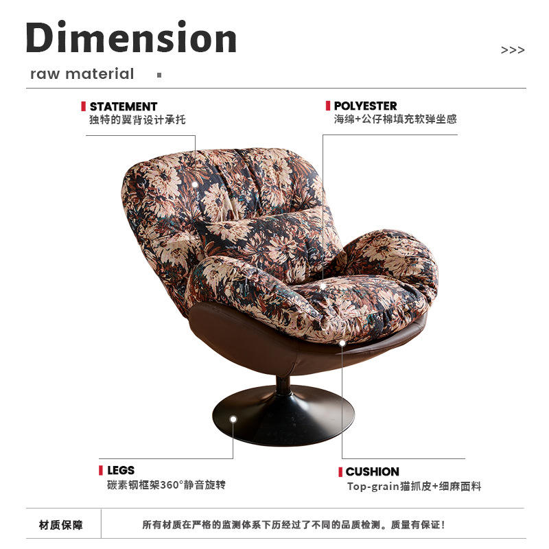 Modern Reclining Sofa Chair Swivel Single Seat Designer Eggshell Style Retro Fabric Upholstery