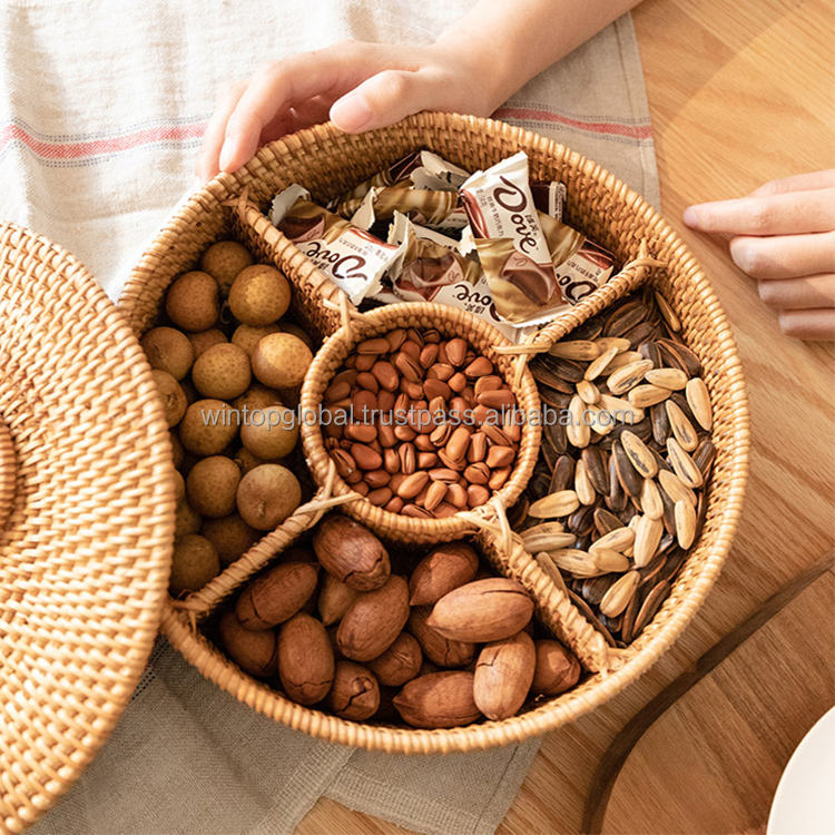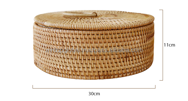 Modern Rectangle/Circle Grid Rattan Storage Basket with Lid for Home Desktop Eco-Friendly Organization Snacks Toys Sundries Keys