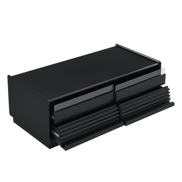 Modern Rectangle Coffee Table with 4 Drawers and 2 Display Shelves 47.2" Wood and Tempered Glass Fluted Style
