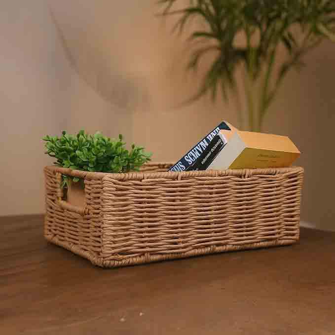 Modern Rectangle Eco-Friendly Foldable Handmade Rattan Storage Baskets Multi-Purpose Decorative Kitchen Ware Home Decorative