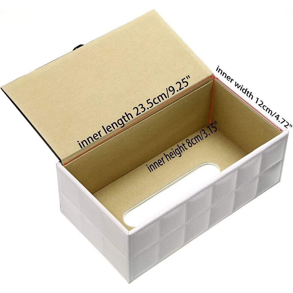 Modern Rectangular Ceramic Tissue Box Holder PU Leather Napkin Dispenser with Pumping Feature Faux Leather Case