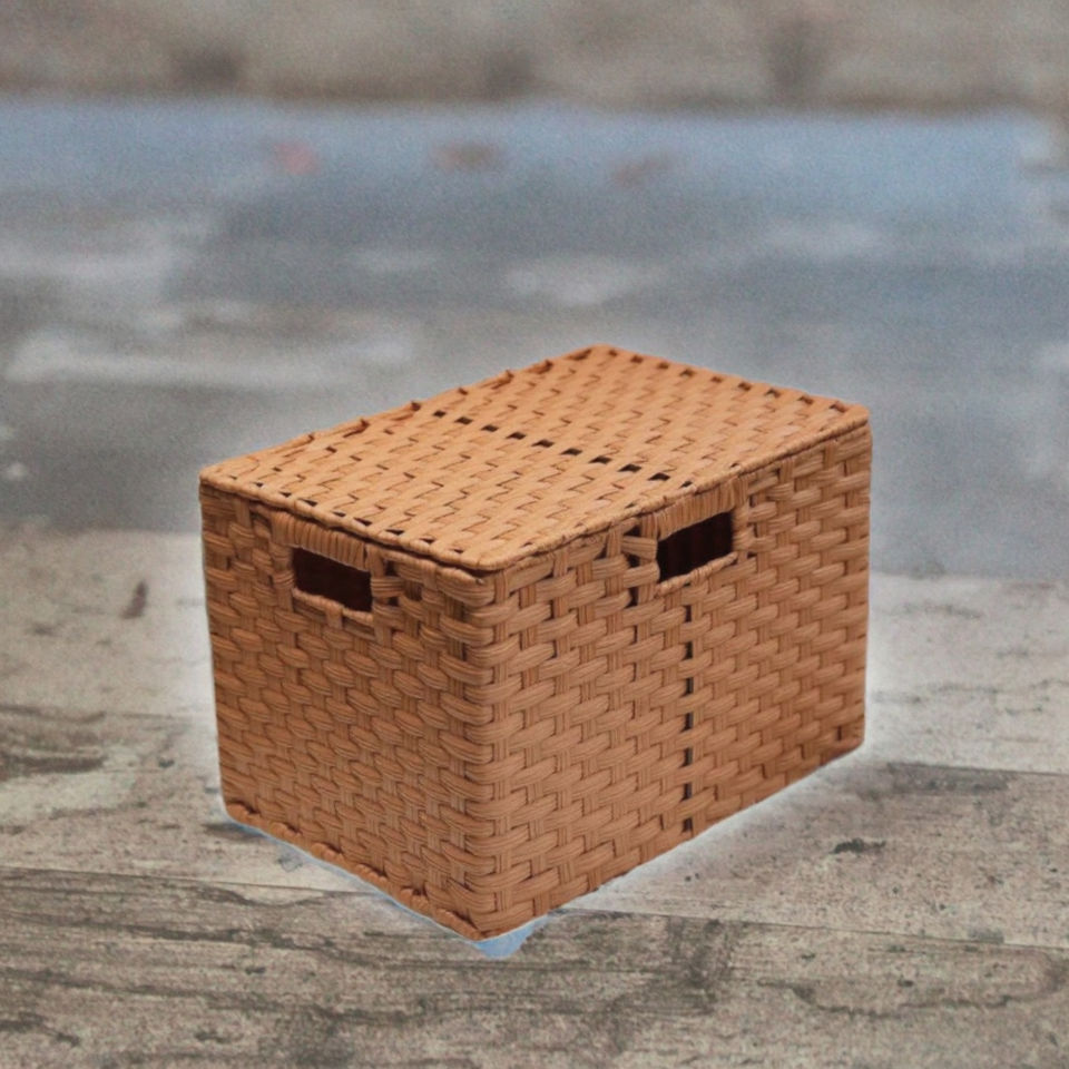 Modern Rectangular Plastic Rattan Woven Storage Basket with Handle Stackable Eco-Friendly Organizer for Living Room & Home Decor